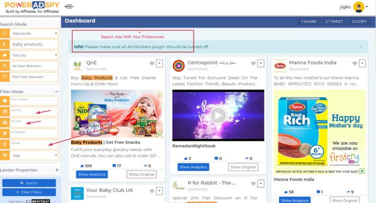 For paid social, we use Power Ads Spy, which allows you to see the Facebook ads that competitors have run and their landing pages.